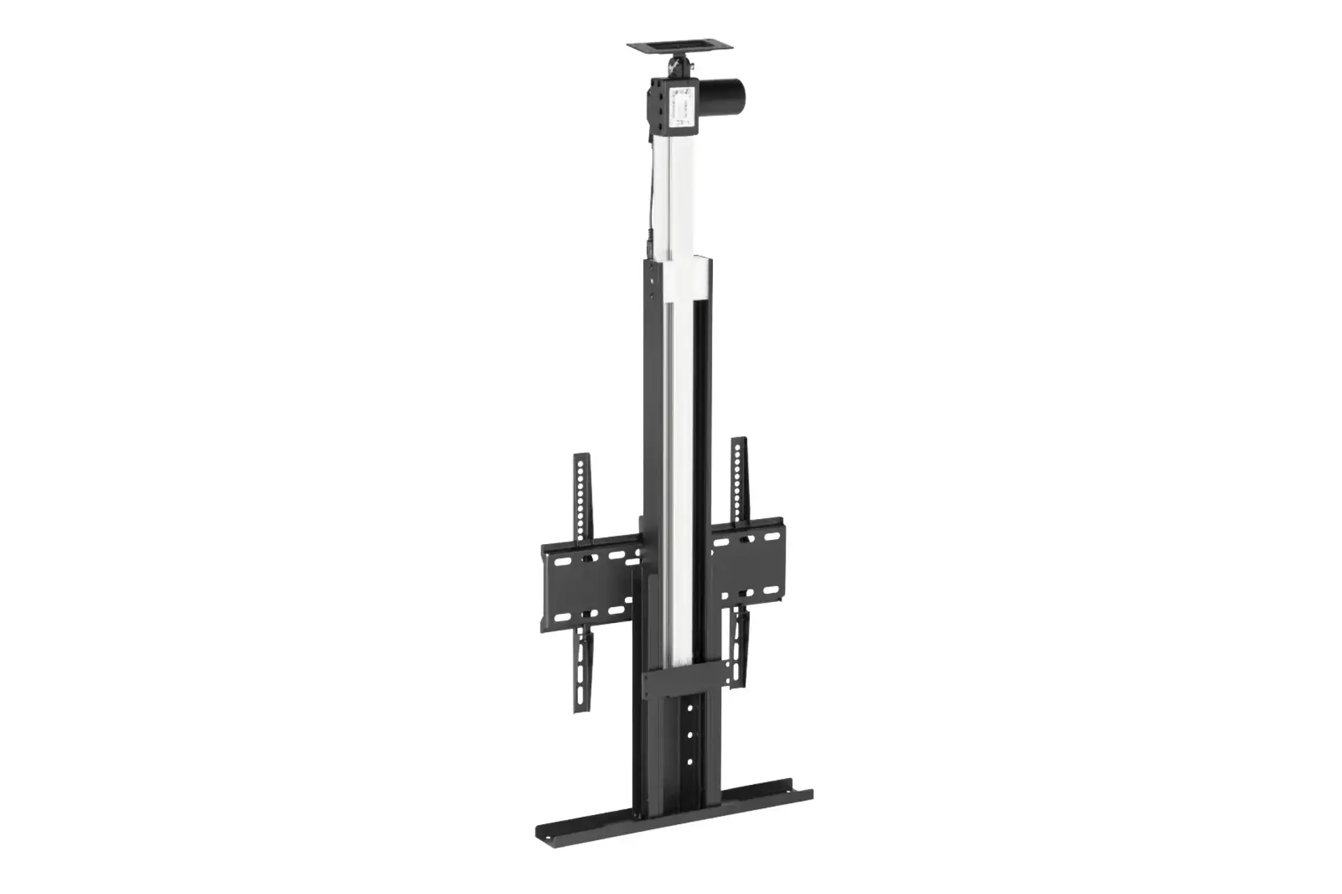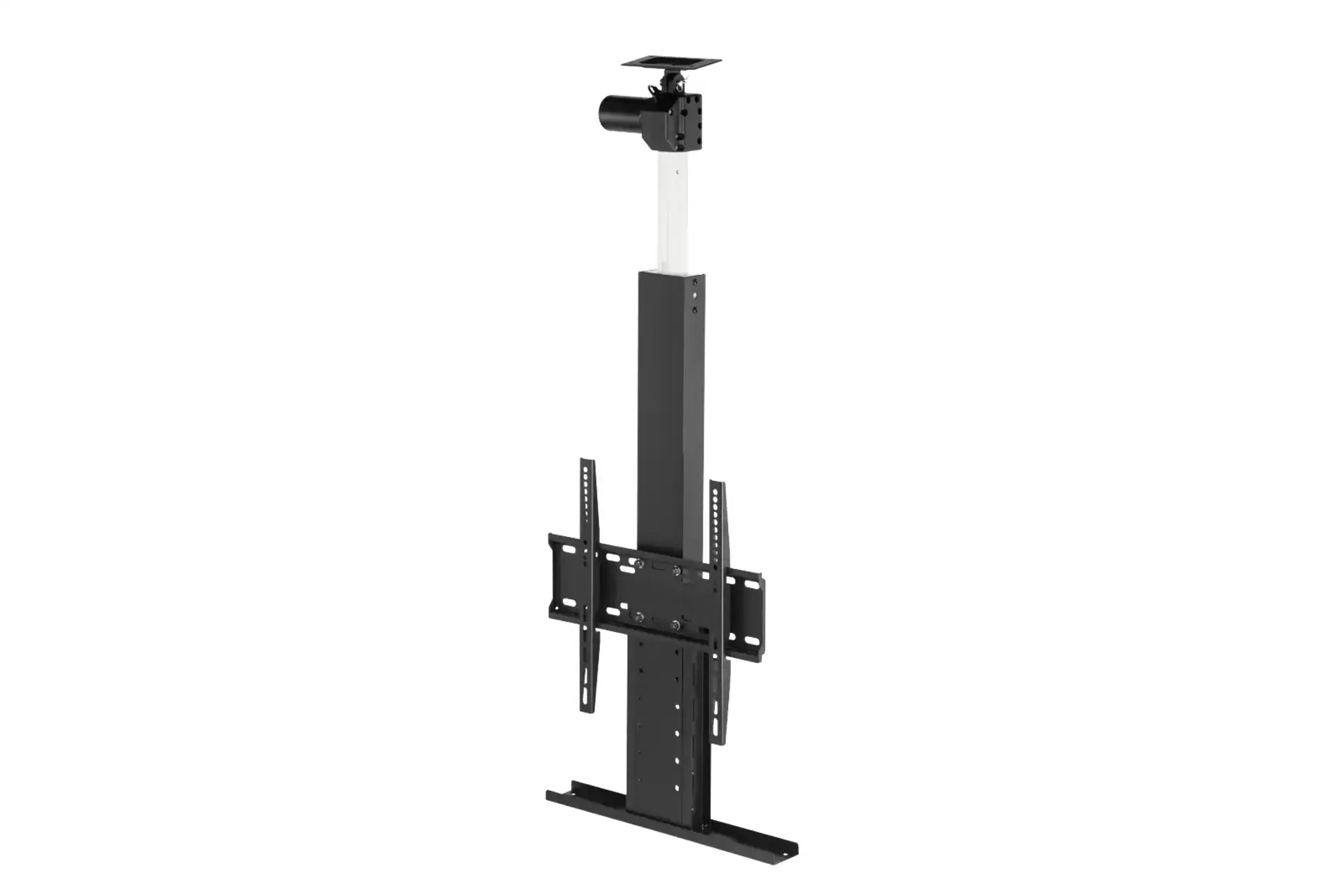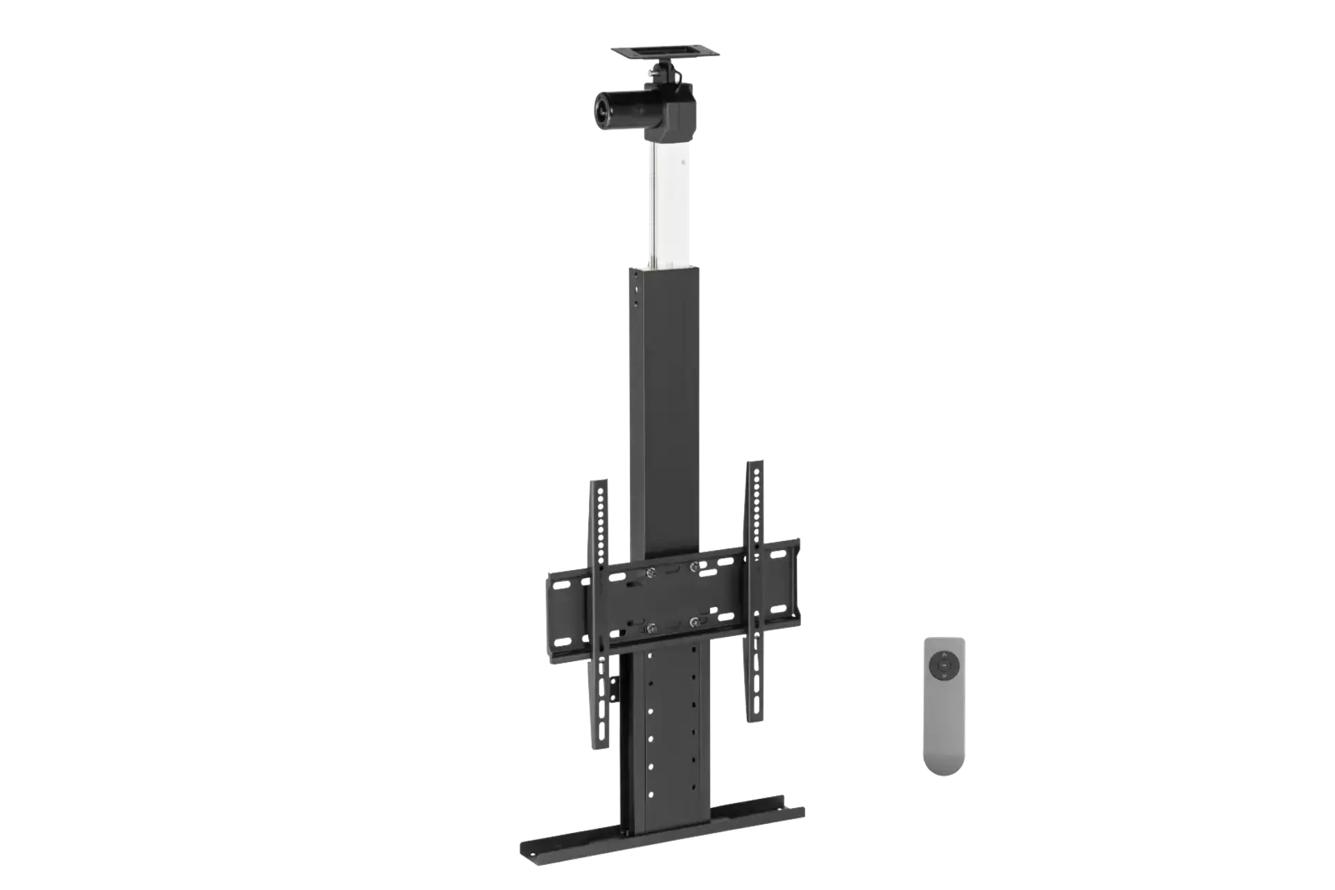 Remote-control, drop-down TV lift, ideal for recessed ceiling spaces with a slim 100mm profile. Floor mountable.