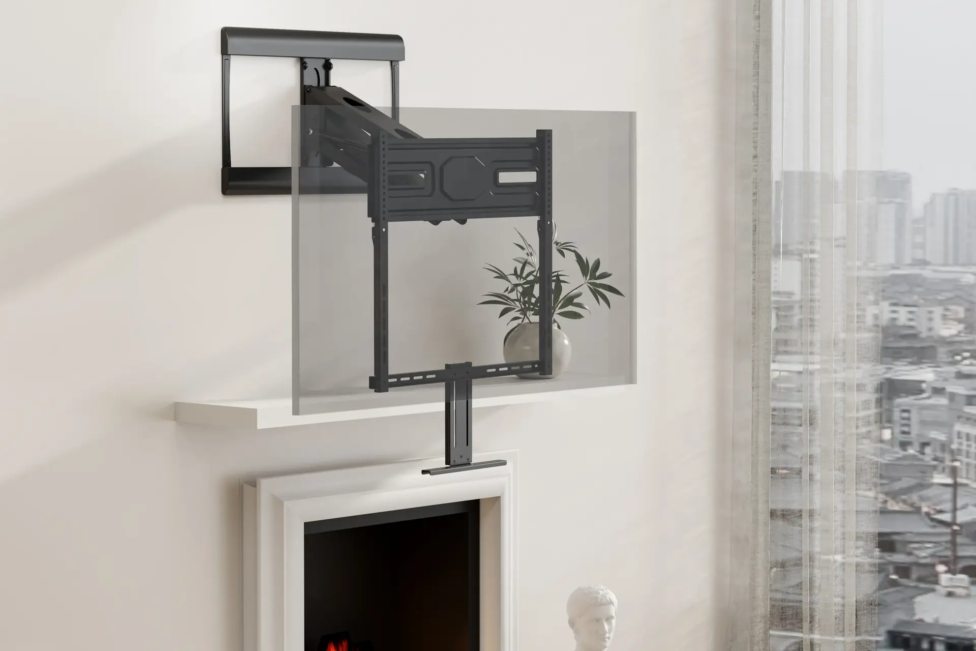 The MFB-M-L is a manual version of NOVO Automation's Smart Mantel Mounts. It allows you to easily watch a TV mounted above a fireplace with a sturdy design that keeps your TV stable. This mount offers a cost-effective stylish way to enjoy your favourite shows from the comfort of your couch.