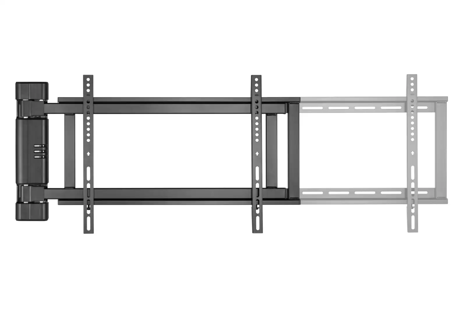 This low-profile swing mount is usually great in open plan kitchen and dining areas. Allowing one television to work for both rooms. The TV hanging bars have built-in adjustment to help you get the TV perfectly level and the provided cable management helps keep the messy cables as neat as possible.